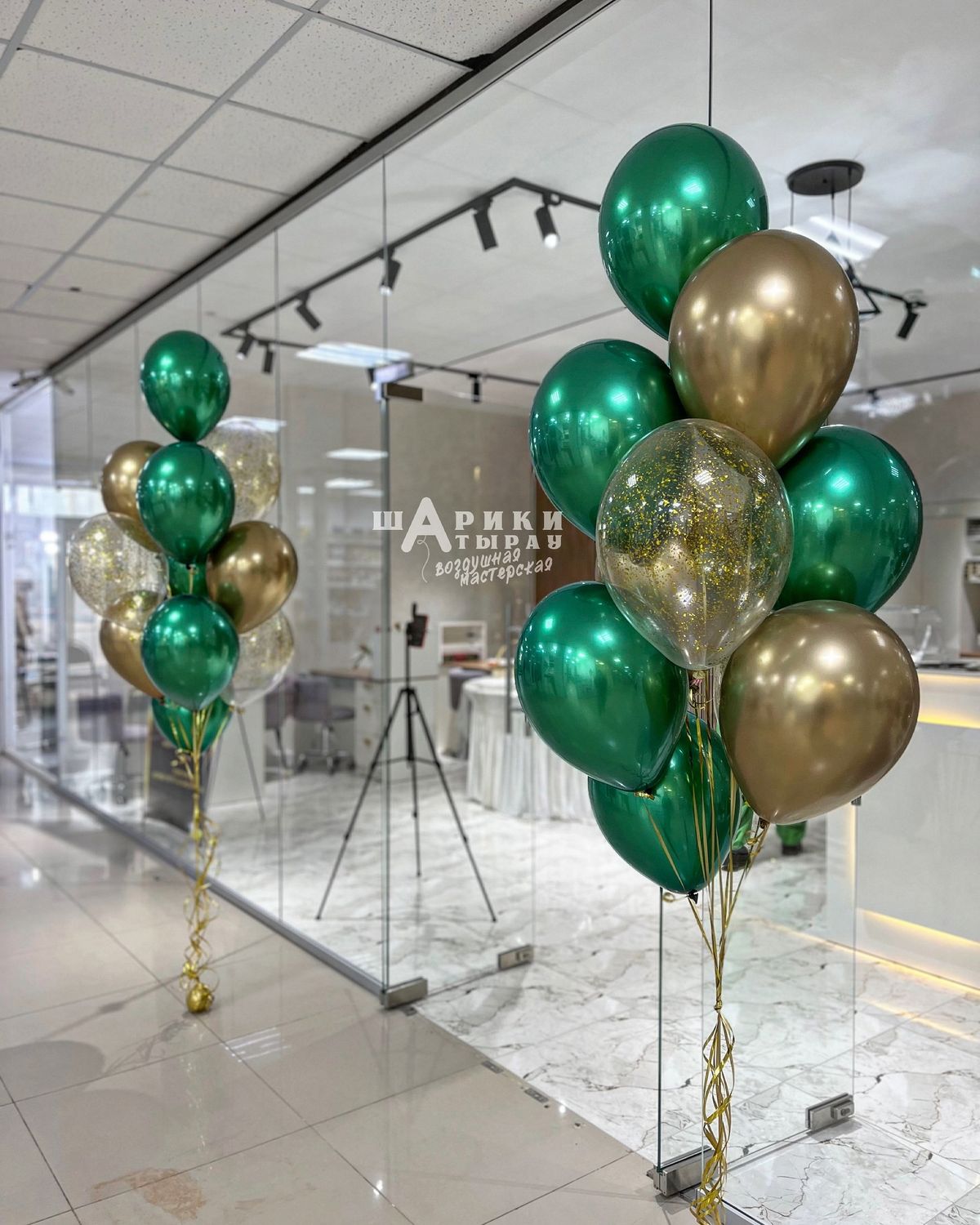 —Фонтан из золотых и зелёных шаров