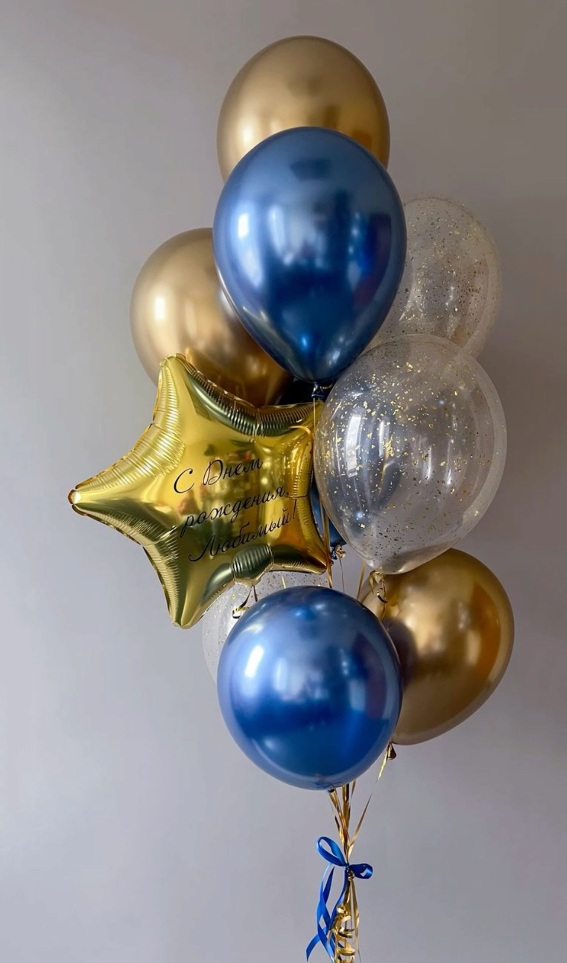 —Фонтан из золотых и синих шаров для мужчины