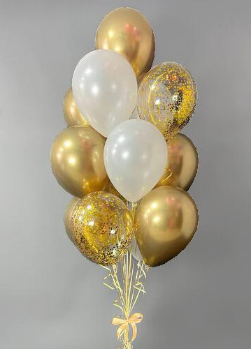 Фонтан из золотых и белых шаров