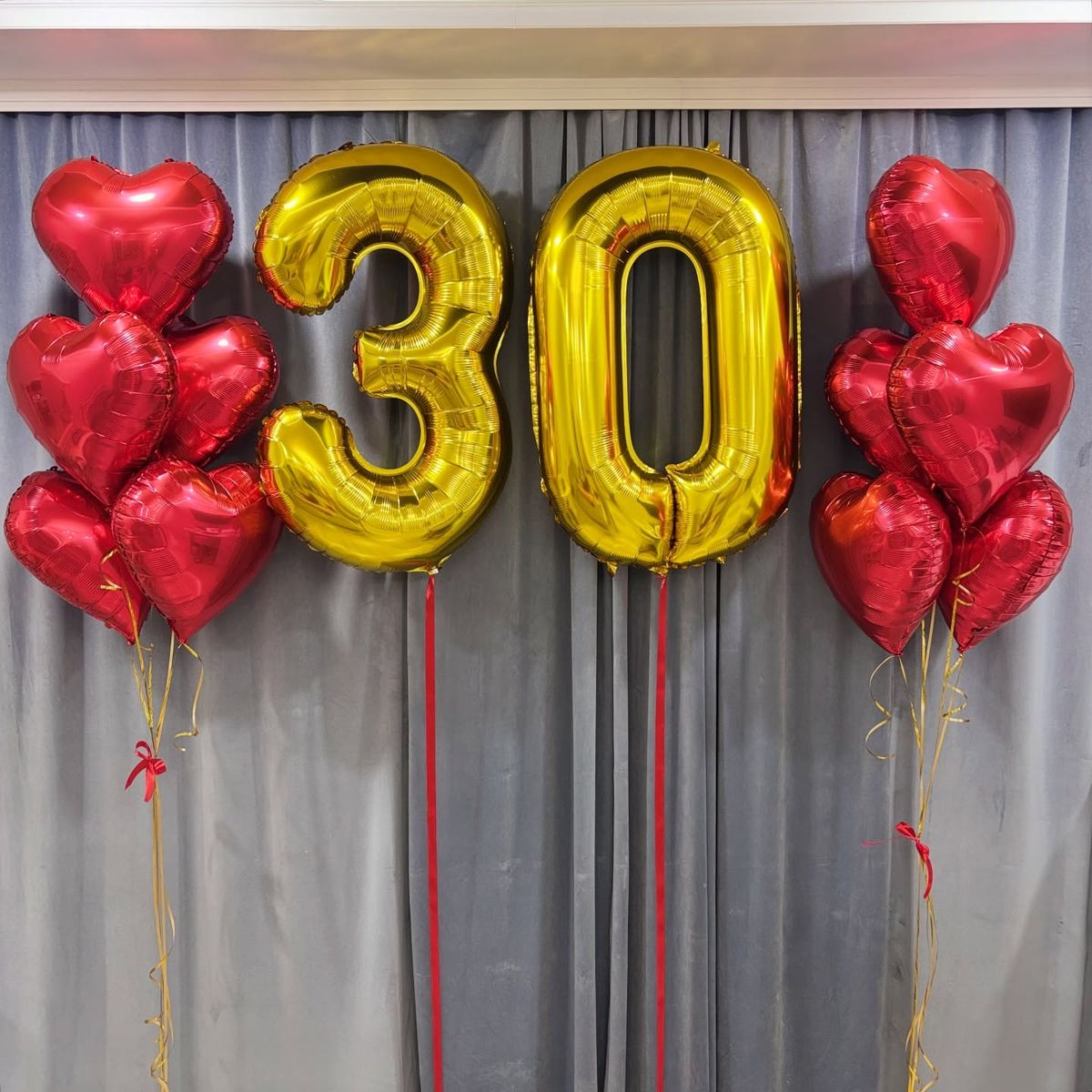 —Золотая цифра тридцать и фонтаны из красных сердец