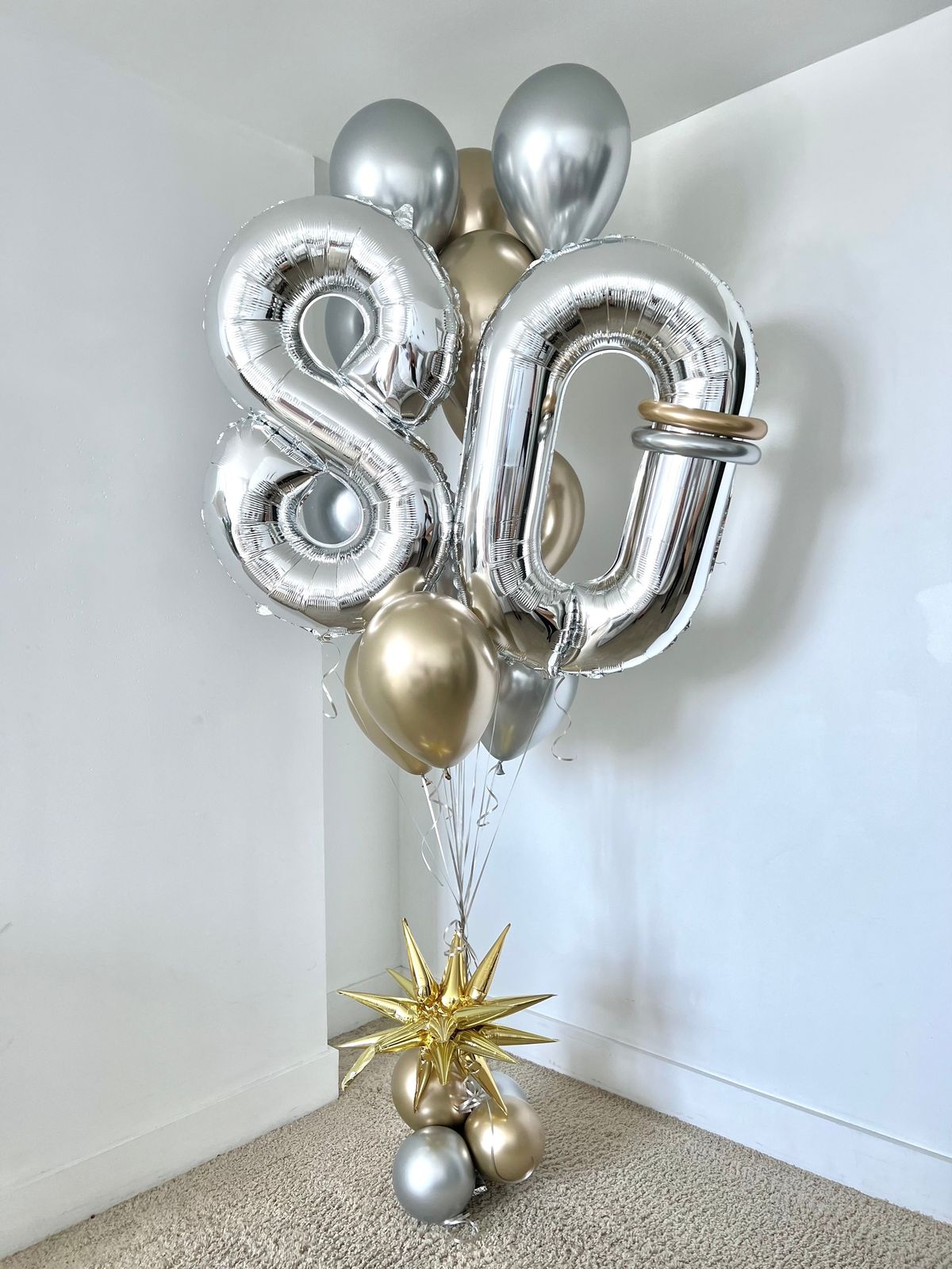 Композиция с серебряной цифрой восемьдесят