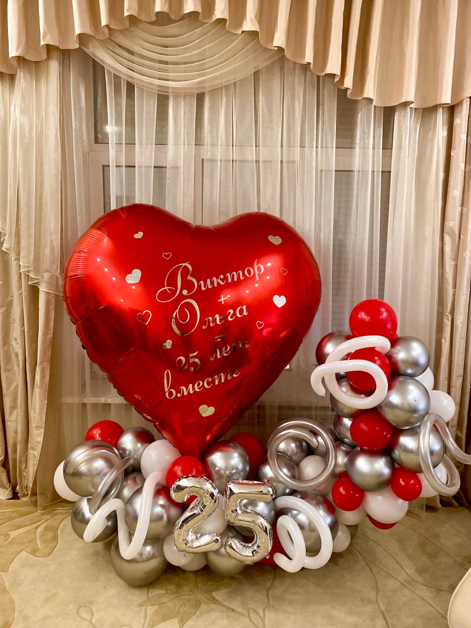 —Большое сердце с надписью на подставке из шаров
