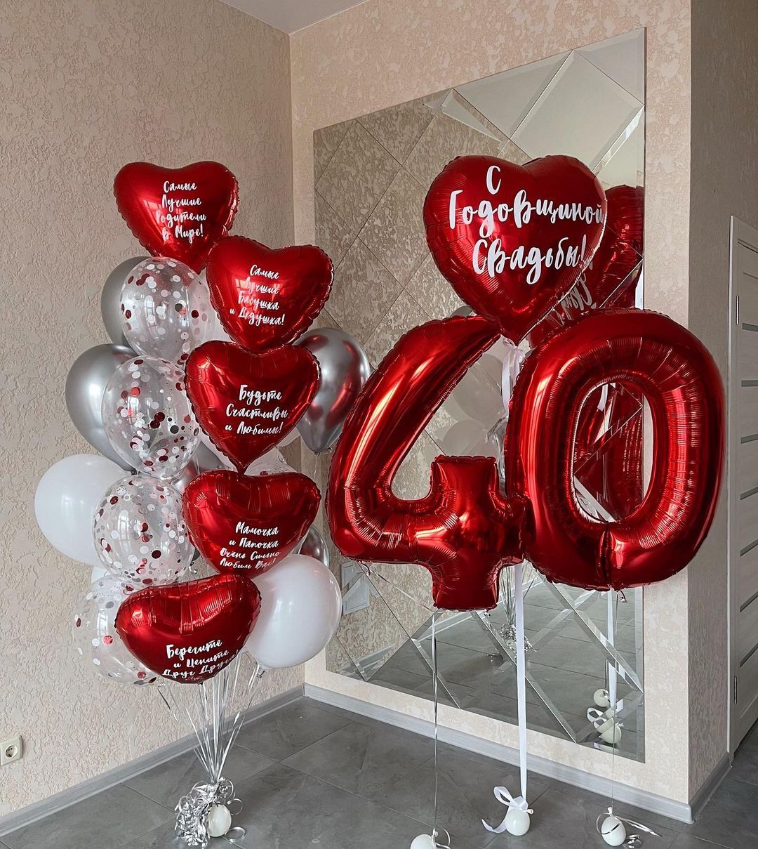 —Композиция из красных и серебряных шаров на свадьбу