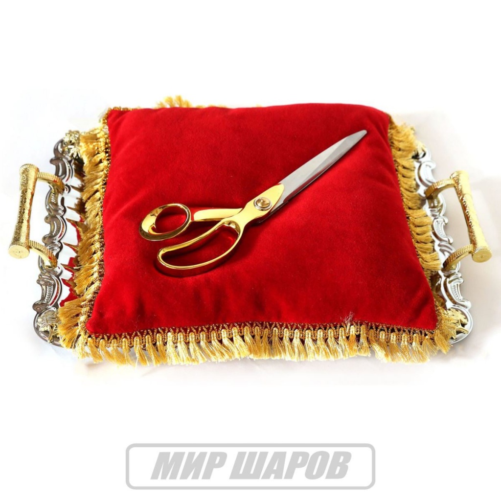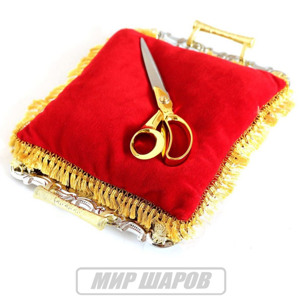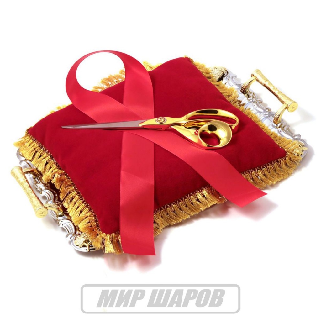 Аренда ножниц, подноса, подушки, золотых стоек, красной дорожки, дополнит помпезность вашему открытию.