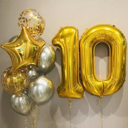 —Золотая цифра десять и фонтан из шаров