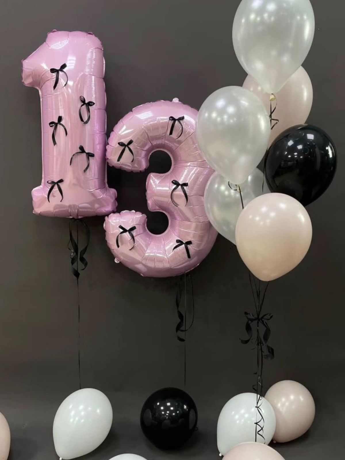 —Цифра тринадцать с бантиками и фонтан из шаров