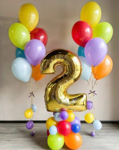 Цифра два на подставке и фонтан из шаров