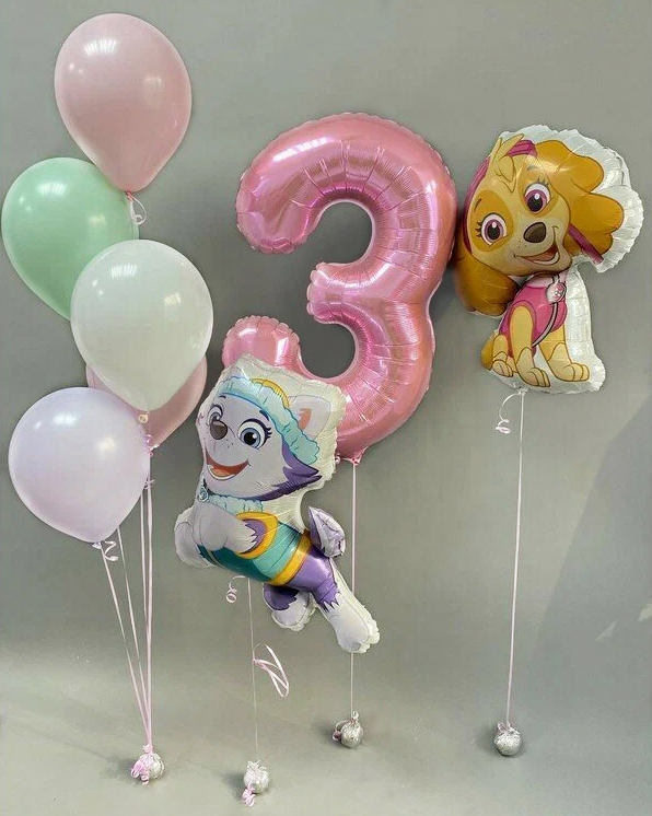 Цифра три, собачки и фонтан из шаров