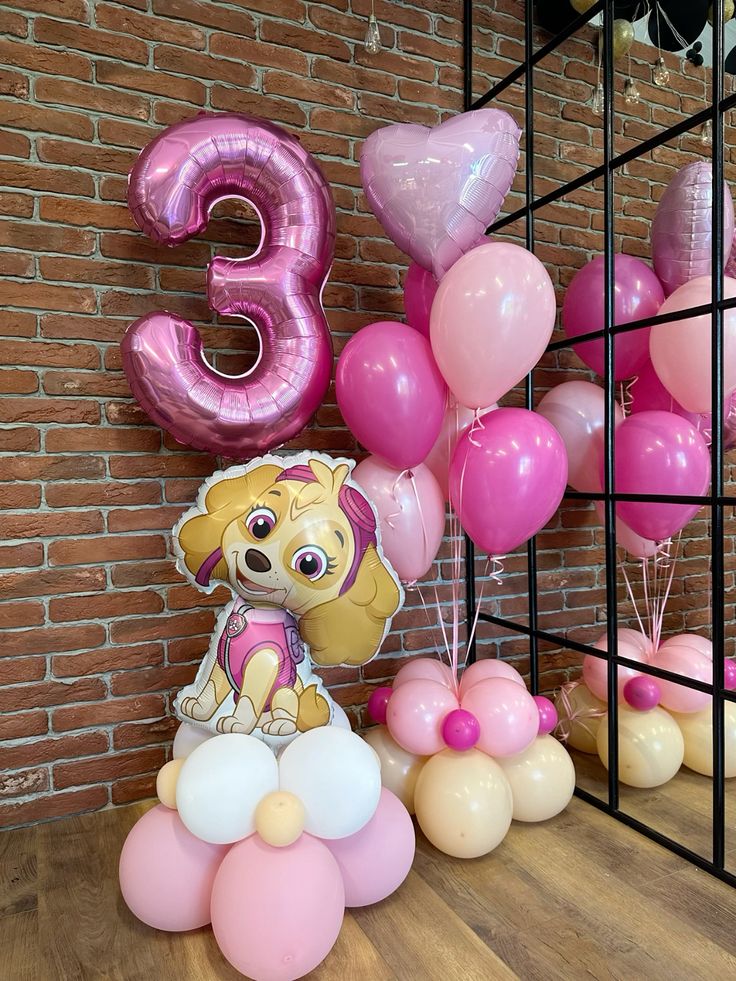 Композиция с розовой цифрой три для детей