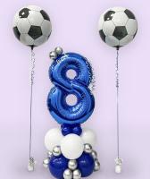 —Синяя цифра восемь на подставке и шары мячи