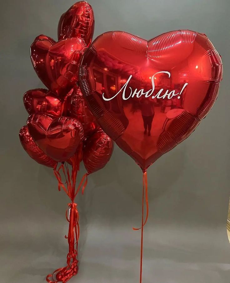 Большое красное сердце с надписью и фонтан из красных сердец