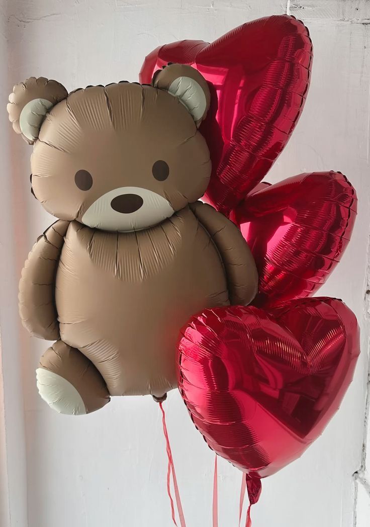 Мишка и фольгированные сердца