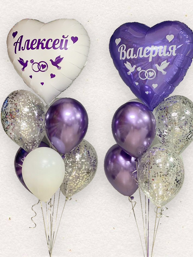 Фонтаны с сердцами и сиреневыми шарами