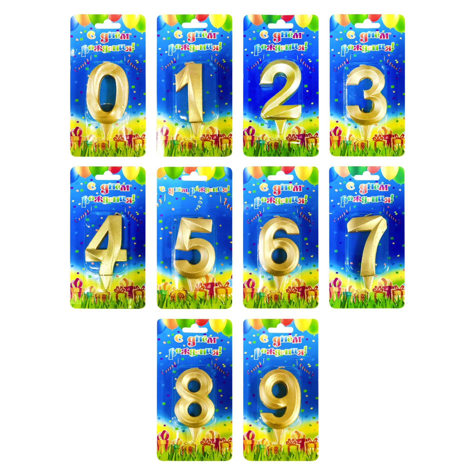 Свеча Цифра,  Грани, Золото, 7 см, 1 шт.