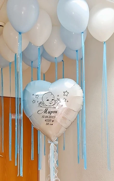 15 шаров в потолок + сердце с вашей надписью